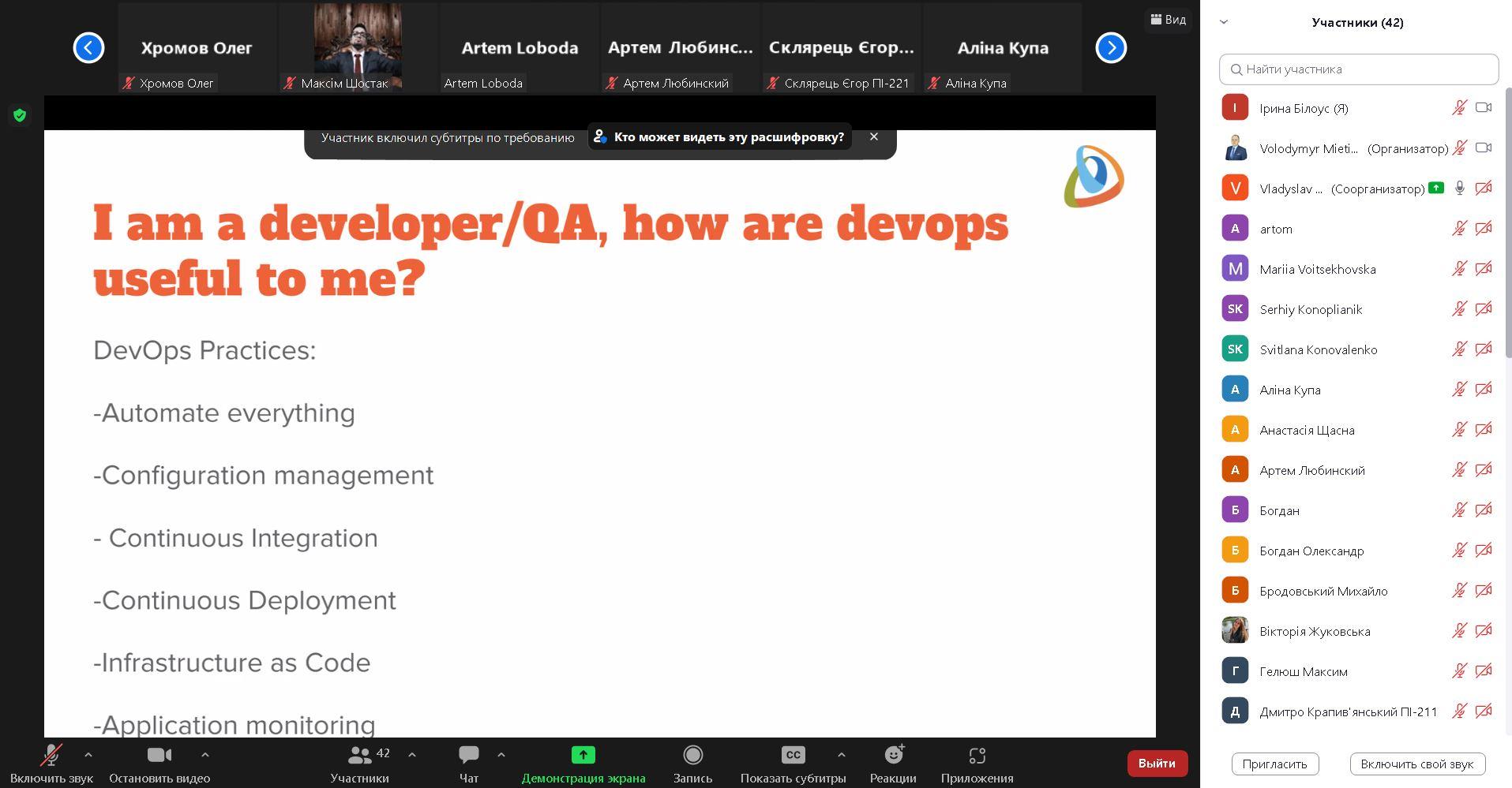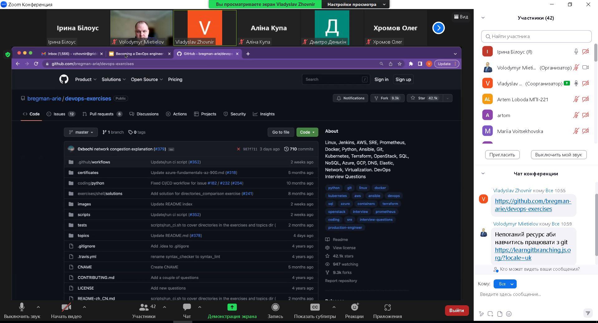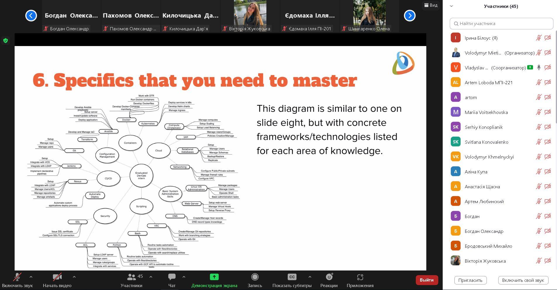 11 квітня 2023р. відбулась гостьова лекція від наших партнерів IT-компанії Grid Dynamics. Тема онлайн воркшопу "Becoming a DevOps engineer A quick guide for students". Своїм досвідом поділився спікер Владислав Жовнір, SL DevOps інженер. Обговорили необхідні кейси для DevOps рівня Junior та Senior. Здобувачі також цікавилися можливостями проходження інтернатури в компанії.