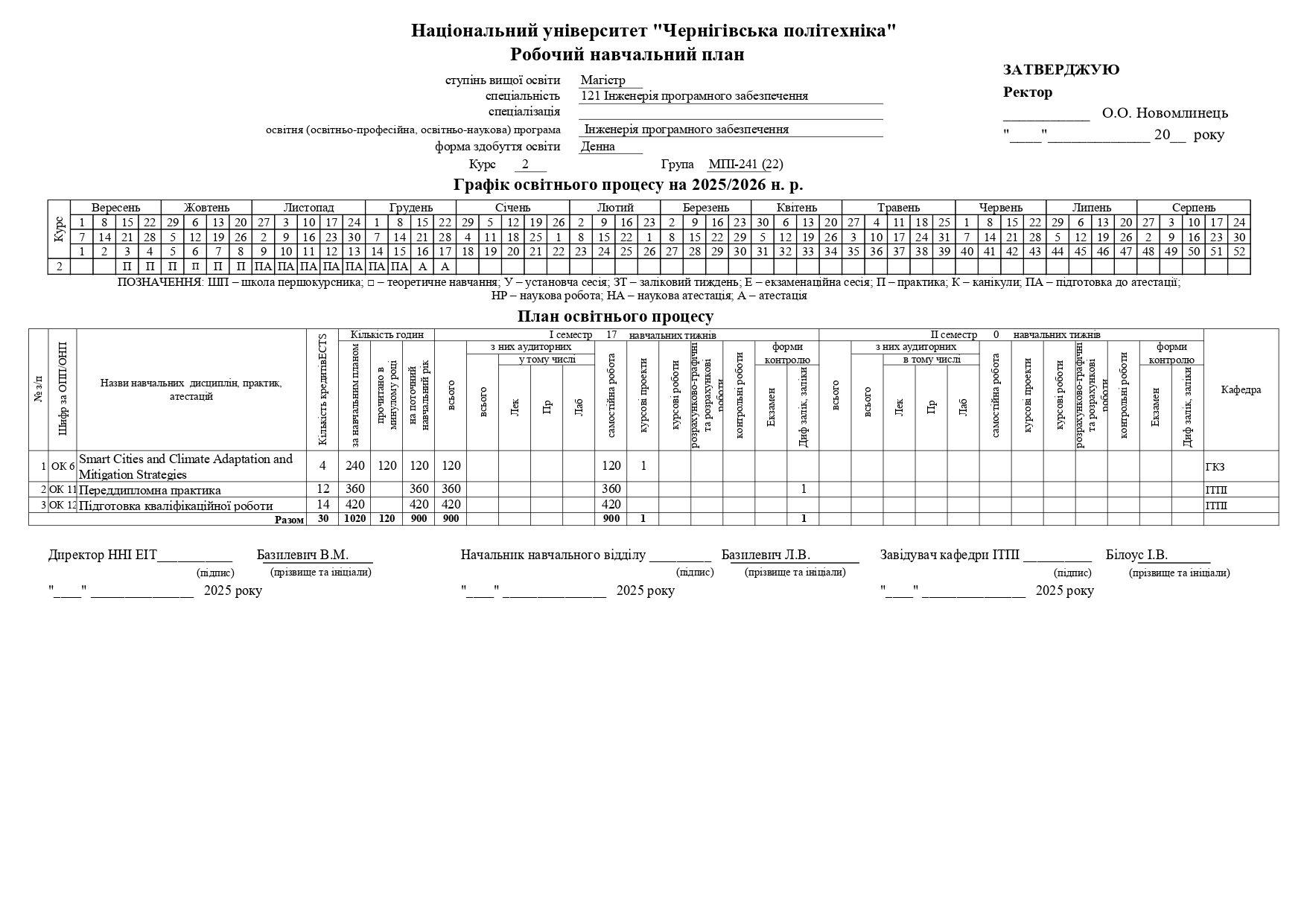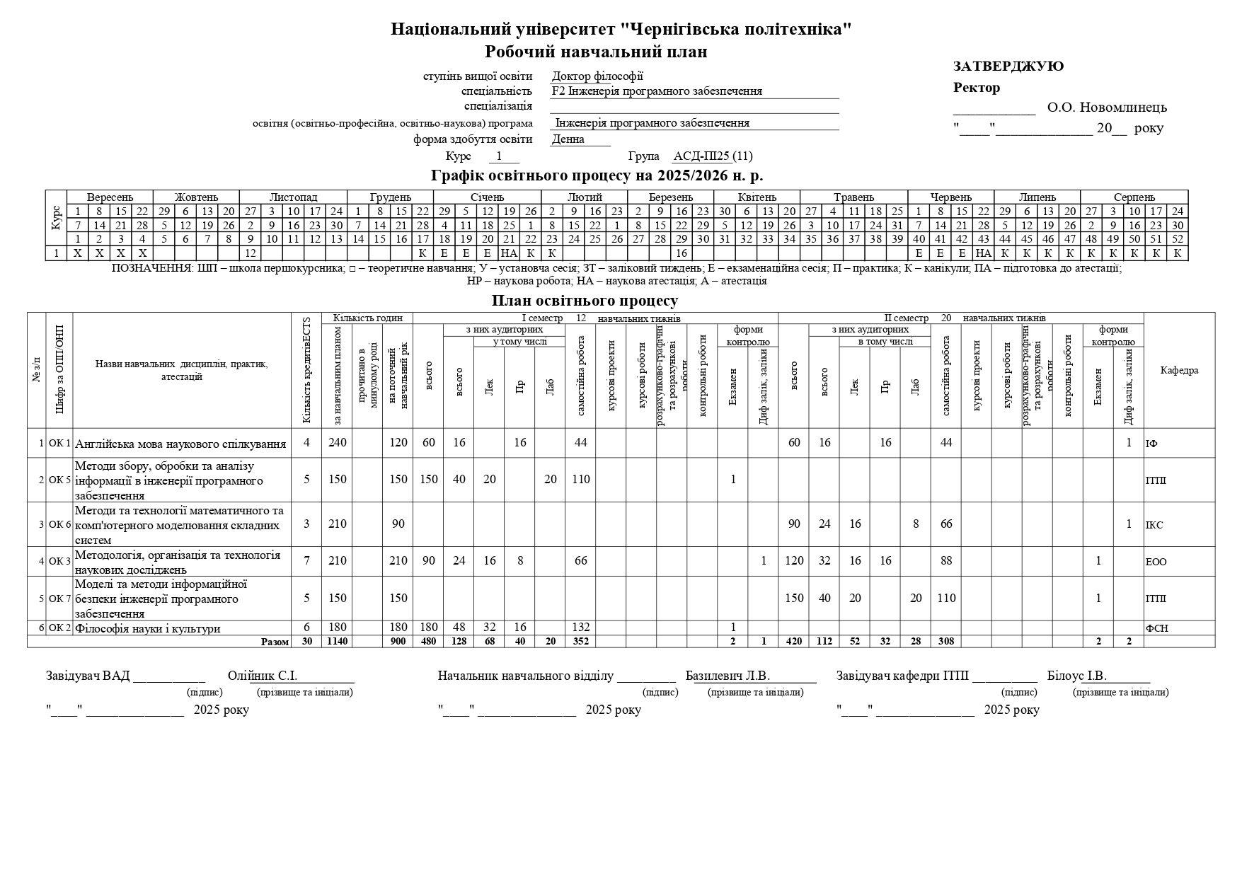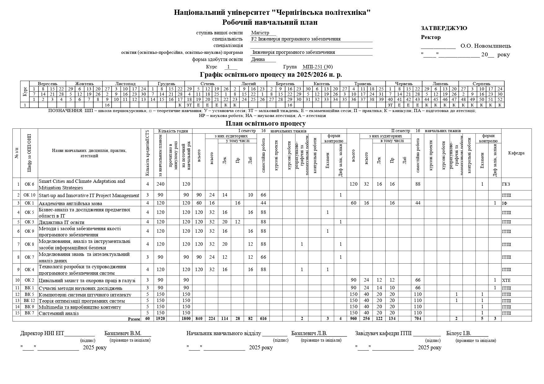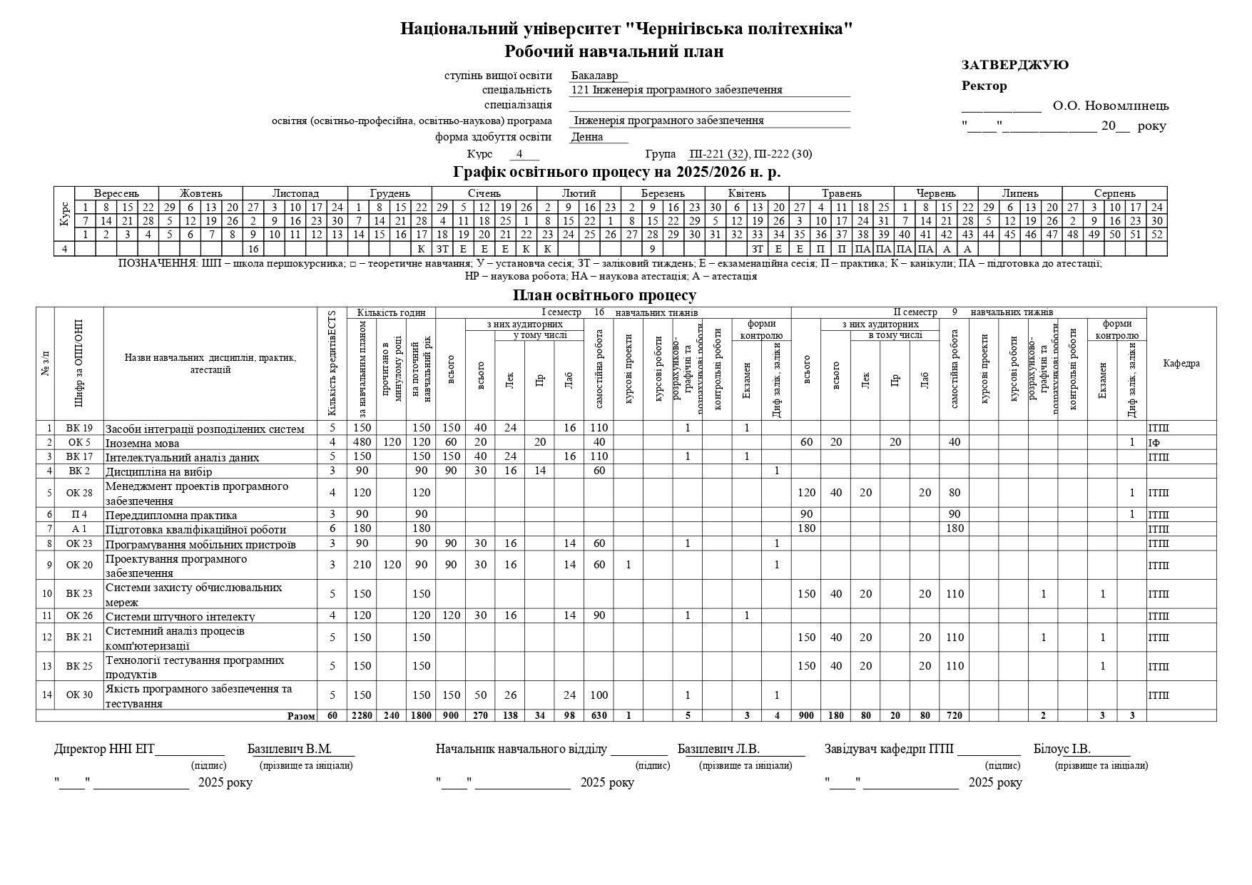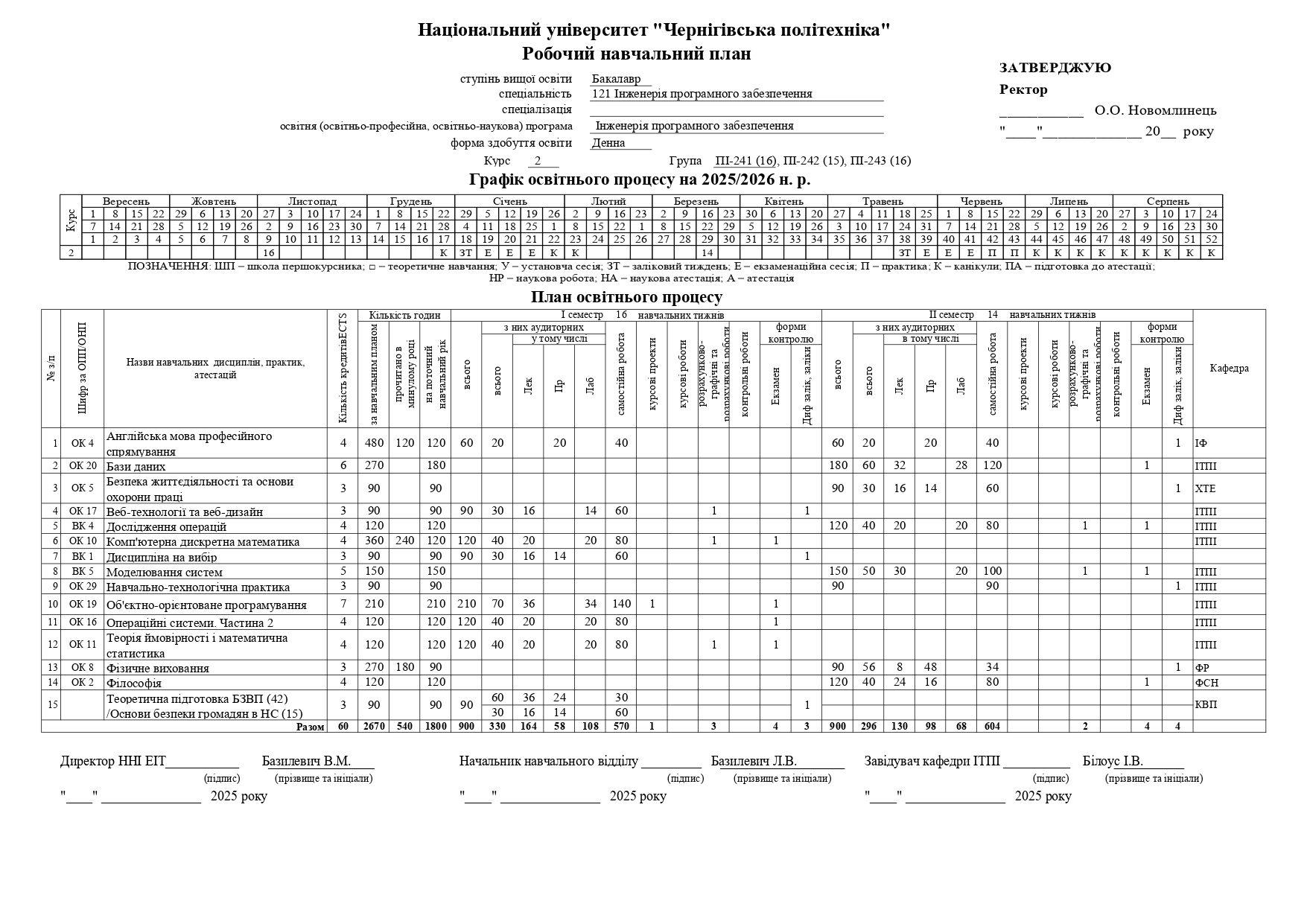 На 2025-2026 н.р. затверджені наступні робочі навчальні плани: